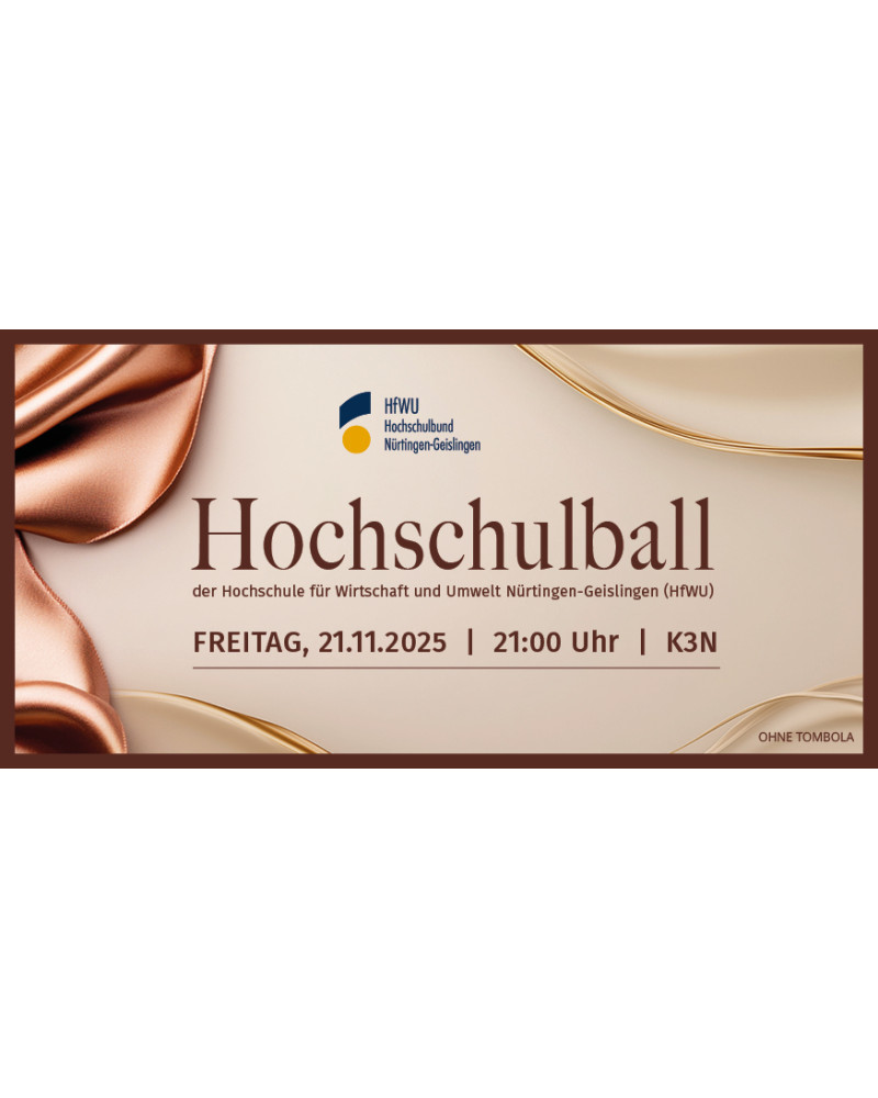 Am Freitag, 21. November 2025, lädt der HfWU-Hochschulbund zu seinem jährlichen Hochschulball ein. Der Ball bildet traditionell den Höhepunkt im Veranstaltungskalenders der Hochschule.